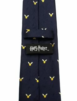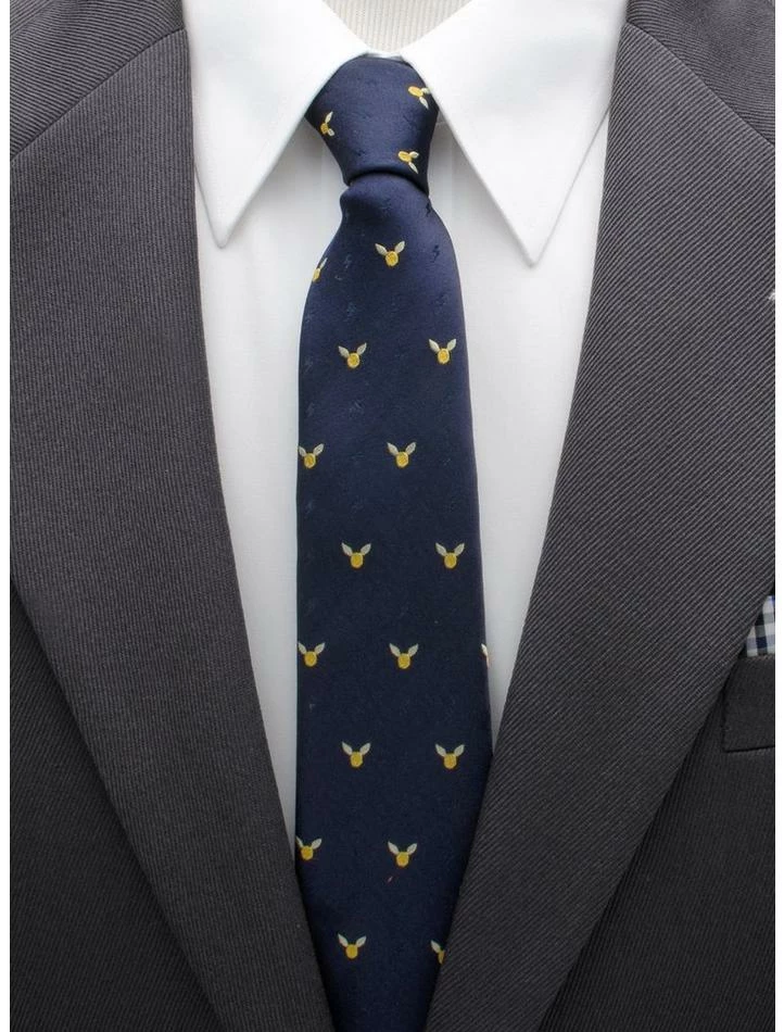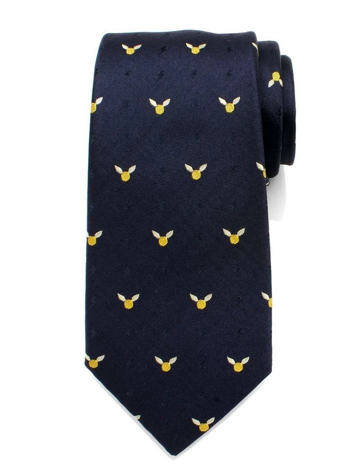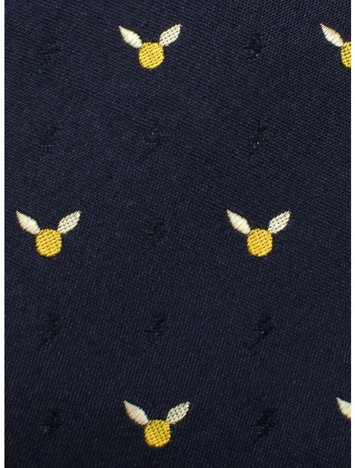 The Golden Snitch Dot Tie is made of 100% silk and weaves together the iconic silhouette of the golden snitch with a lightning bolt that blends into the navy background. The pattern lends itself to a classic menswear look while subtly showing your loyalty to the Harry Potter fandom. Approximately 59″ x 3″, 100% silk. Officially licensed by Warner Bros. Entertainment Inc.