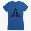 Add some magic to your OOTD. This fitted, lightweight royal blue Harry Potter tee has an outlined image of Hogwarts Castle that positively seems to glow.