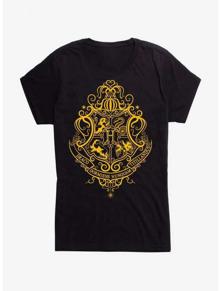 Best Pirce ๐ Harry Potter Hogwarts Shield Yellow Outline ๐ง Girls T-Shirt ๐ฅฐ