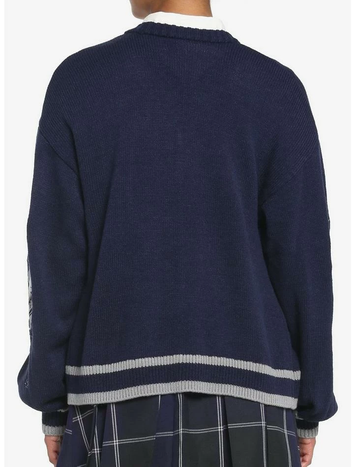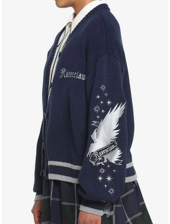 Ready for another great year at Hogwarts? Rep some house pride at the Start-of-Term Feast in thisย Harry Potterย cardigan! It has a slouchy, skimmer fit and features “Ravenclaw” embroidered at the chest. Comes with striped ribbing at the hem and cuffs, plus star and house mascot embroideries down the sleeves. Complete with a button-up closure.