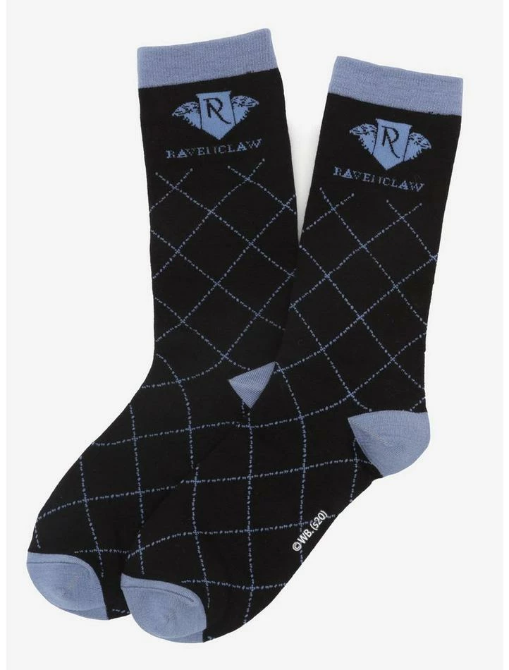 Represent the house of intelligence and wit! Every Ravenclaw needs to own a pair of these cushiony-soft socks featuring diamonds of blue and black, and the house crest woven into the top. Moisture-wicking and comfortable, these are the perfect socks for the Harry Potter fan who has everything. Officially licensed by Warner Bros. Entertainment Inc.