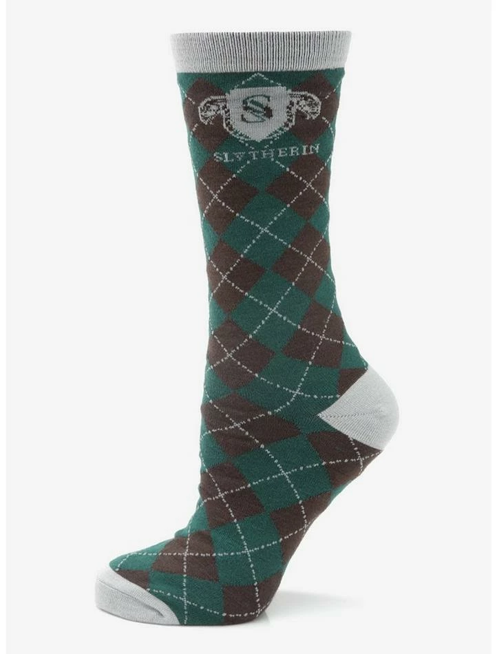 Represent the house of ambition and cunning! Every Slytherin needs to own a pair of these cushiony-soft socks featuring argyle checks of green, silver, and dark gray, and the house crest woven into the top. Moisture-wicking and comfortable, these are the perfect socks for the Harry Potter fan who has everything. Officially licensed by Warner Bros. Entertainment Inc.