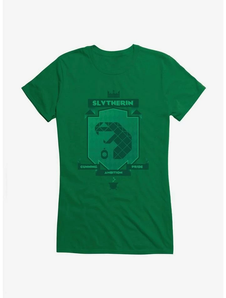 Hot Sale ๐งจ Harry Potter Slytherin Green Pixel Shield Logo ๐ง Girls T-Shirt โญ